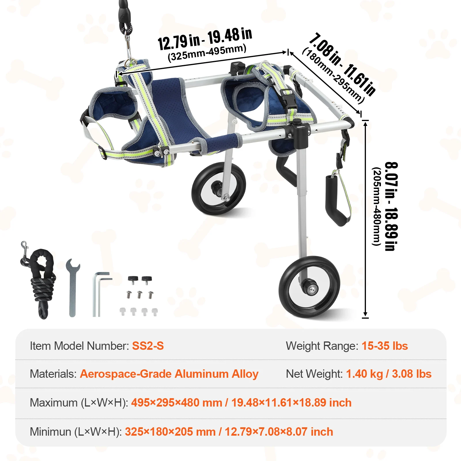 The lightweight yet durable frame provides strong support without adding strain, while the adjustable design ensures a secure, customized fit for your dog’s body. Smooth-rolling wheels allow easy movement across indoor and outdoor surfaces, helping your pet stay active and engaged.