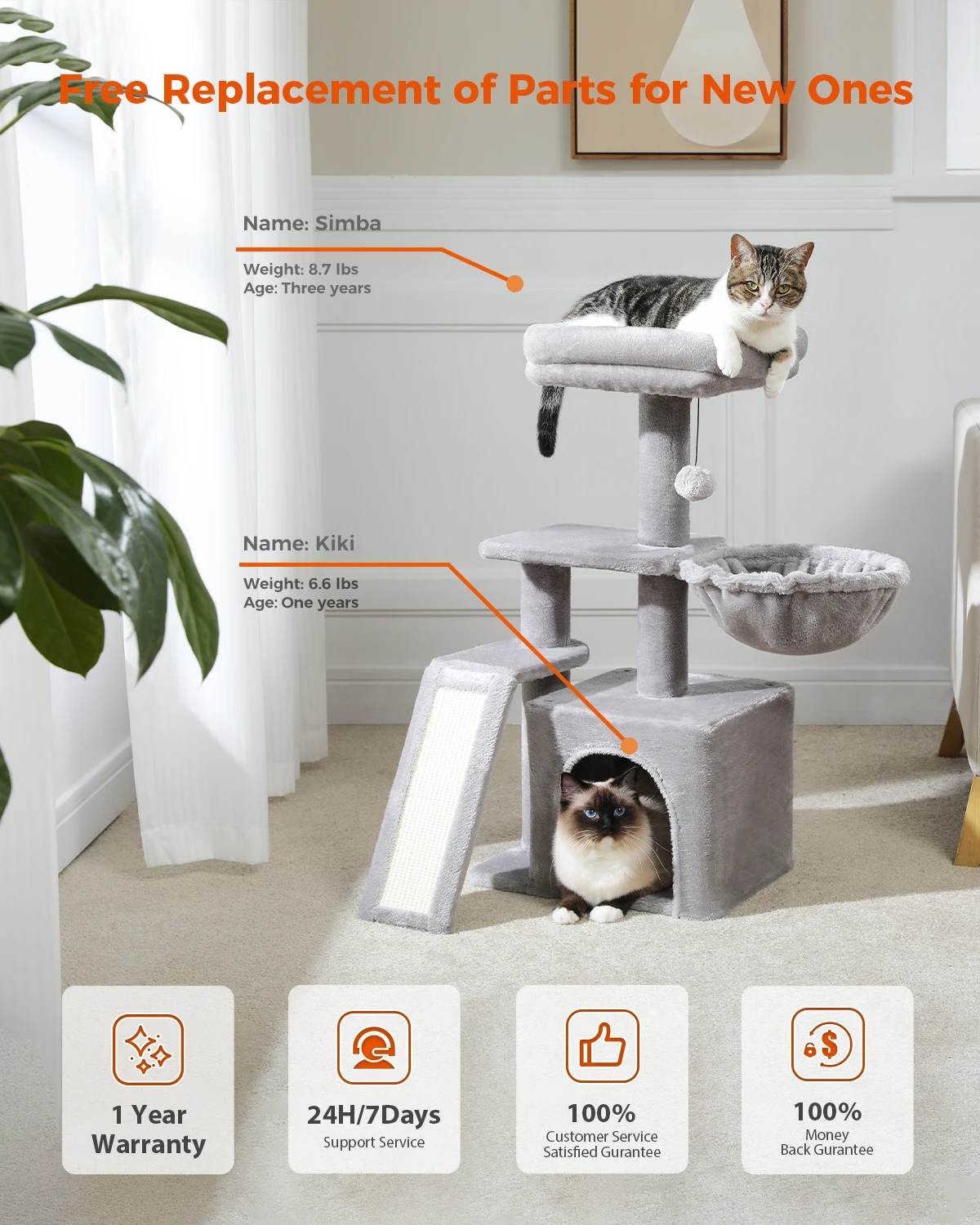 The spacious top platform provides a comfortable perch for lounging and observing, while the private cat condo below offers a safe, enclosed space for napping or hiding. Compact yet sturdy, this cat tower is perfect for apartments, bedrooms, or any indoor space where your cat can climb, scratch, and relax.
